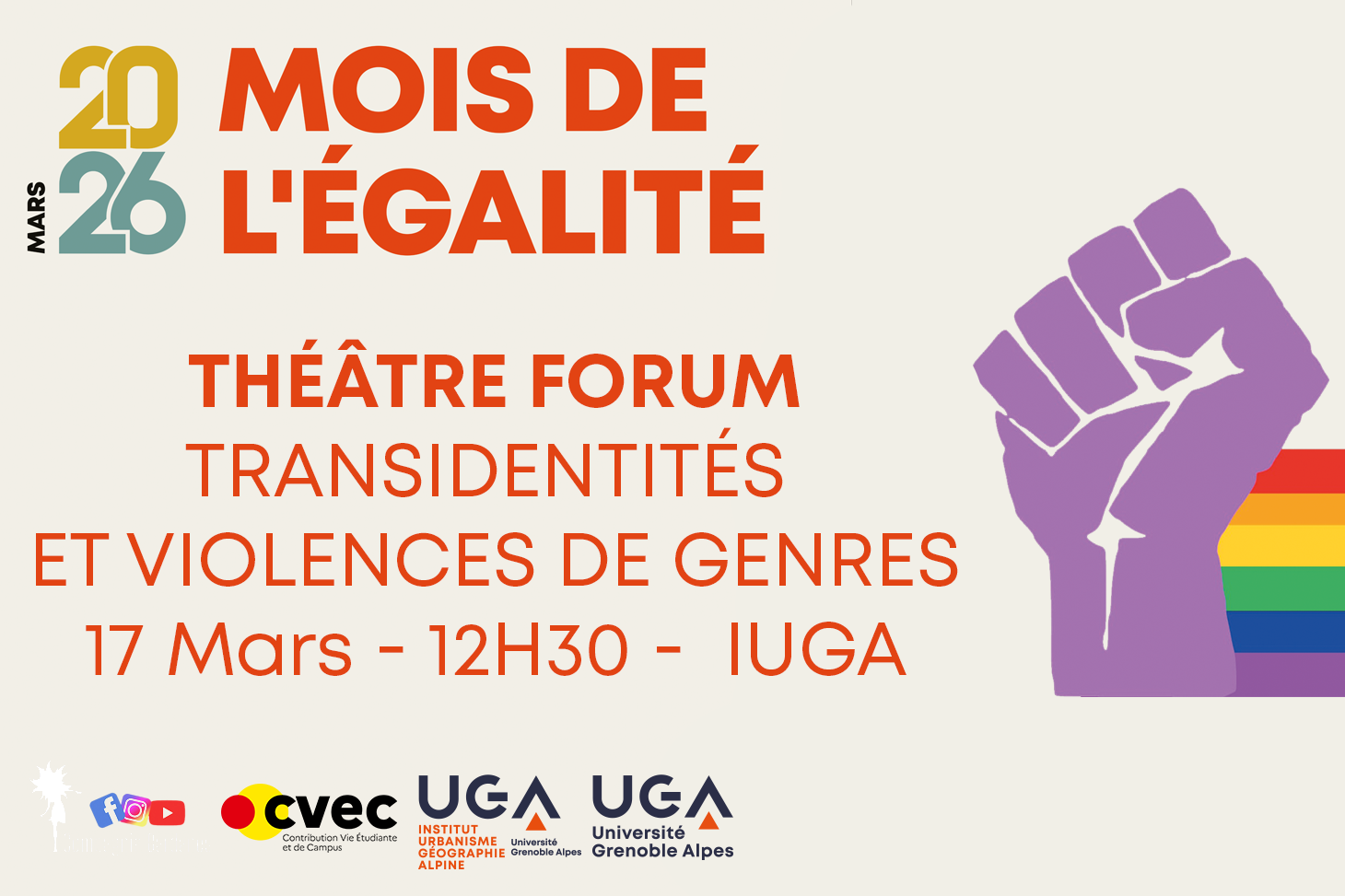 Dans le cadre du mois de l'égalité, l'IUGA accueillera une représentation de théâtre forum sur le thème de la transidentités et des violences de genres.
